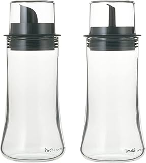 iwaki(イワキ) 耐熱ガラス 調味料入れ ソース差し ブラック 160ml フタ付き KT5032-BKS & 耐熱ガラス 調味料入れ 醤油差し 液だれしない ブラック M 160ml フタ付き KT5032-BK 【セット買い】