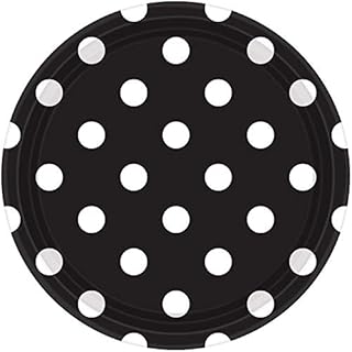 (18cm x 18cm ) - Party Ready Polka Dots Round Dessert Plates Tableware, Jet Black, Paper , 18cm , Pack Of 8