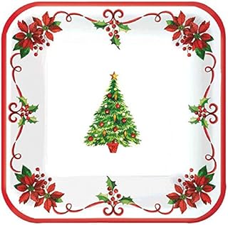 Amscan Traditional Christmas Square Paper Dessert Plates Disposable Party Tableware (Pack of 40), Multicolor, 18cm