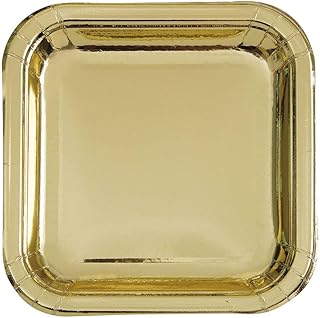 (Large Square Paper Plates) - 23cm Square Foil Paper Party Plates, Gold, 8ct