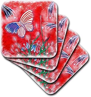(set-of-8-Soft) - 3dRose Patriotic Fantasy Butterfly & Stars - Soft Coasters, Set of 8 (cst_195390_2)