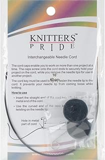Knitter's Pride-交換可能コード 8インチ (16インチ 先端付き)、ブラック W/ゴールドメッキコネクタ