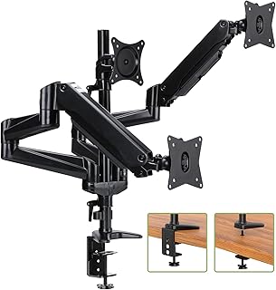トリプルモニタースタンド - 17-32インチ フルモーション アルミニウム ガススプリングモニターマウント 3つの17-32インチ LCDコンピュータースクリーンに対応 クランプ付き グロメットキット(ブラック)