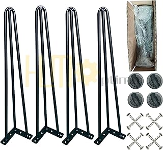 HLMOptimo 22インチ ヘアピン 家具脚 コーヒーテーブル脚 高耐久 22インチ メタル家具脚 3ロッドデザイン メタルホームDIYプロジェクト 家具用 ラバーフロアプロテクター付き ブラック 4個パック