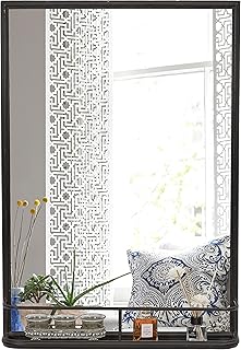 モダン 長方形 壁掛けメタルミラー 棚付き 吊り下げ式 ブラックフレーム 壁ミラー 浴室用 (マットブラック 22インチ x 32インチ)