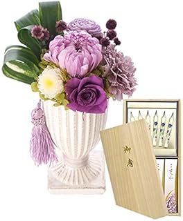 フラワーキッチン お供えプリザーブドフラワー『花ごろも』パープル 銘香 芝山 桐箱 絵ろうそくセット