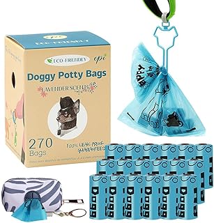 Sellamzdm 犬 うんち袋 臭わない 猫/犬用 うんち処理袋 トイレ袋 エチケット袋 100%生分解性 防水 防臭 散歩 お出かけ 屋外用 携帯便利 18ロール(270枚)+ 1 ディスペンサー+1ハンズフリークリップ