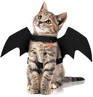 Retvi 犬用コスチューム ペット服 コウモリ 翼 猫被り物 ペットコスプレ 変身服 コスチューム ベル付き 悪魔 ハロウィン仮装 かわいい 猫/小型犬用 変身グッズ 簡単着脱 写真 撮影道具 ハロウィン クリスマス ペット用品