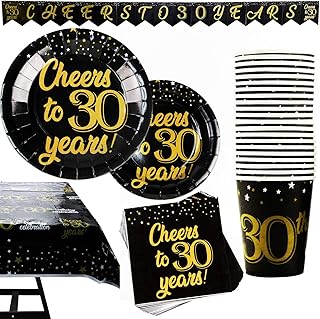 142ピース 30歳の誕生日パーティー用品セット バナー、プレート、カップ、ナプキン、テーブルクロス、スプーン、フォーク、ナイフ、20人分