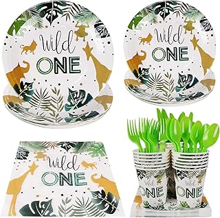 Wild One Party Supplies - 20人用 パーティープレート スプーン フォーク カップ ナプキン パーティーパック サファリ動物テーマ 誕生日 ベビーシャワーパーティーデコレーション